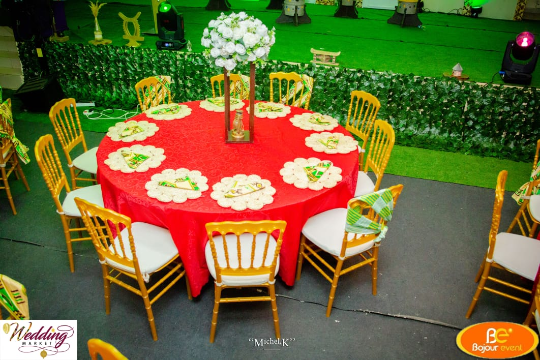 Spécialisée dans la décoration évènementielle, l’organisation de cérémonies (mariages, conférences, galas, etc.) et la formation professionnelle, BOJOUR ÉVENT valorise les matériaux ethniques africains (cauris, poteries, pagnes, calebasses…) pour créer des ambiances inoubliables, porteuses de sens et d’identité.